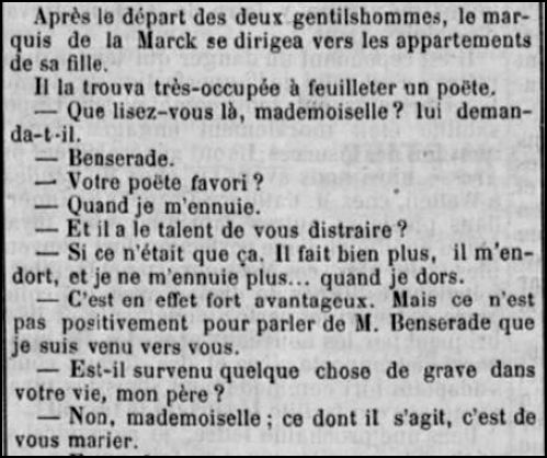 et dans le numéro du 30 janvier 1947 du journal La Quotidienne, dans le feuilleton M. et Mme de Saintot, Benserade était présent.