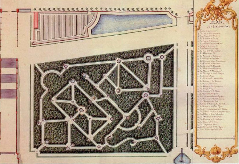 Versailles, Le Nôtre a repris le projet de ce labyrinthe, et La Fontaine étant