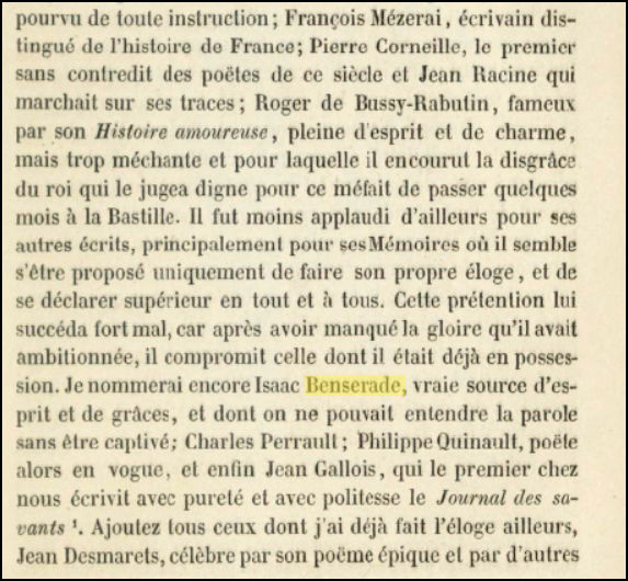 Dans ses Mémoires, tome 1, 1829 , Madame de la Vallière parle de Benserade.