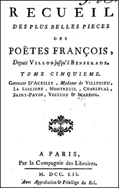 dont le titre était "Recueil des plus belles pièces des poètes français,
