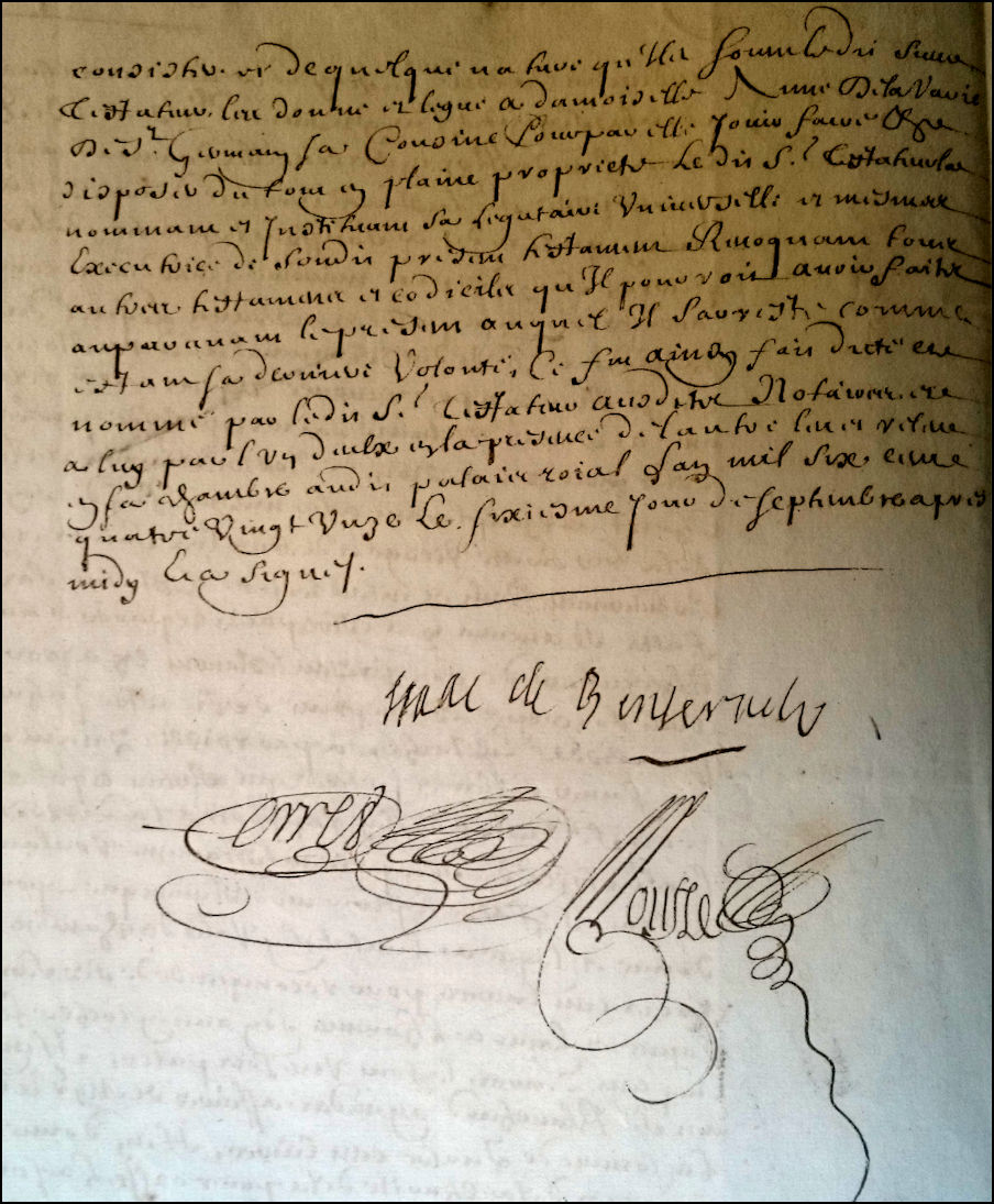 Testament de Benserade signé le 6 septembre 1691 chez un notaire